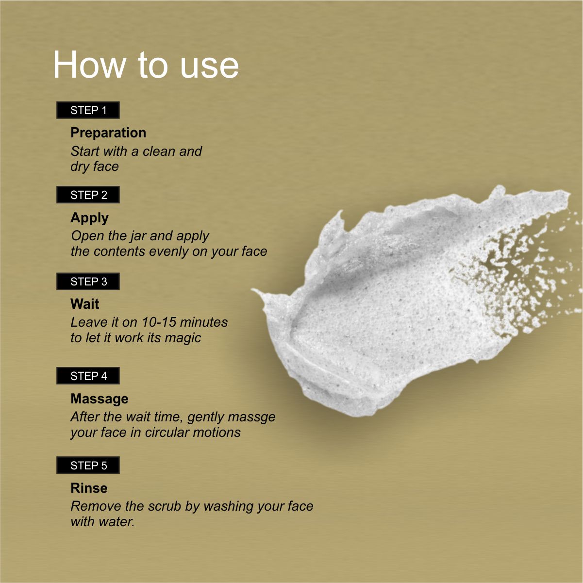 Take a small amount of D Tan Scrub and gently massage onto damp skin in circular motions for 1–2 minutes. Avoid eye area.